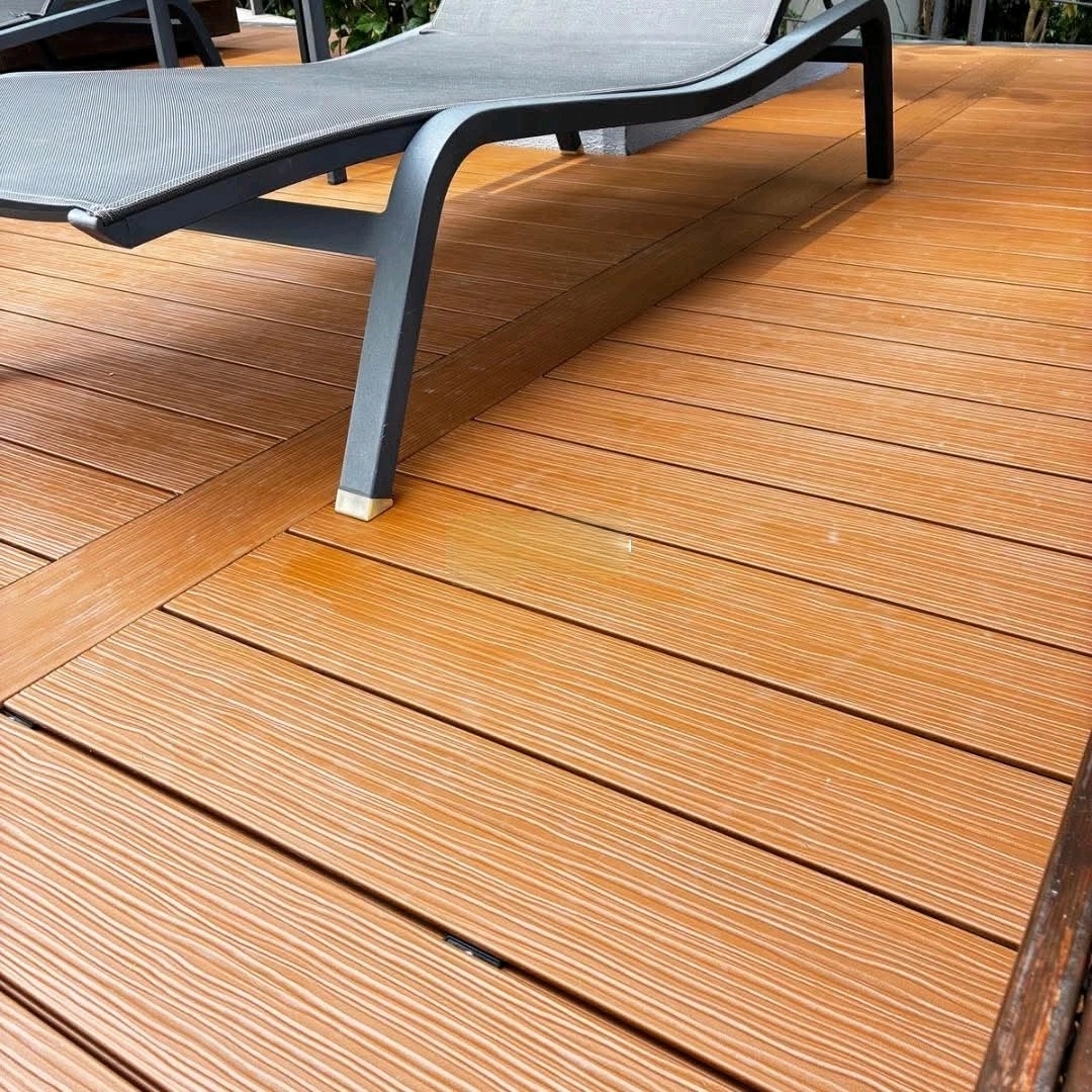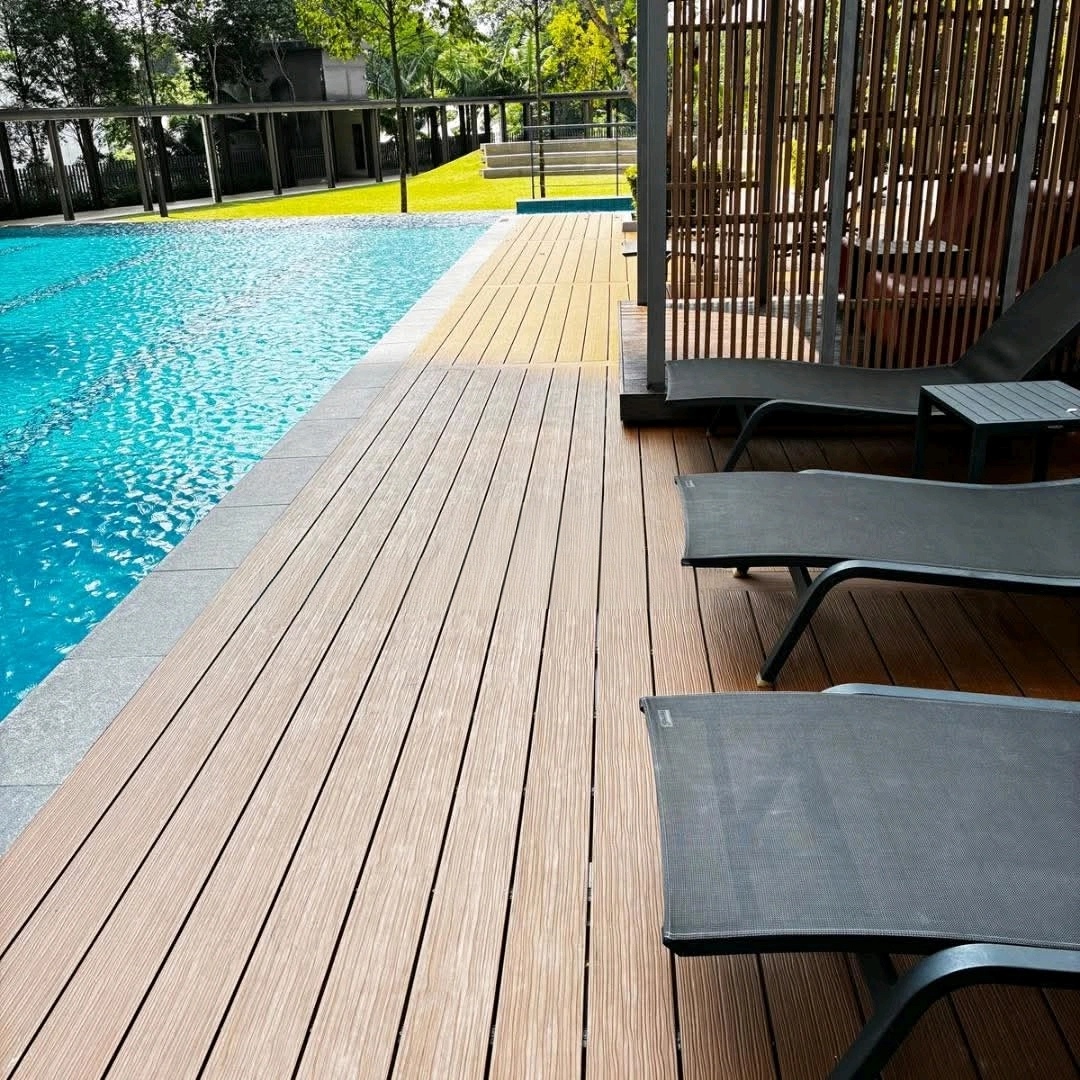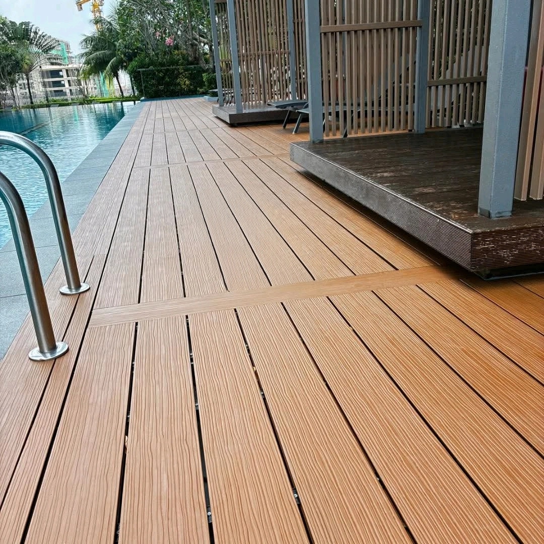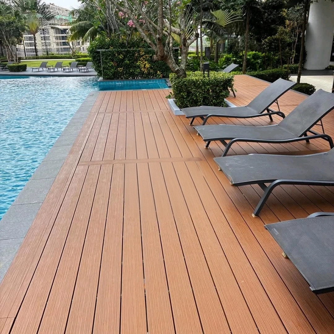 Bicolor WPC Decking is applied in villa terraces, resort pools, urban parks, and walkways.